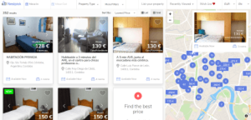 Stránka idealista.com je dostupná vo viacerých jazykoch, čo robí vyhľadávanie ubytovania jednoduchším. Taktiež ponúka množstvo filtrov, vďaka ktorým si vieš upresniť, čo od ubytovania vyžaduješ. Či už je to dostupnosť od centra, cena, počet izieb, alebo kúpeľní. Ich databáza nehnuteľností je naozaj široká a nájdeš tu ubytovanie i v menších mestách a dedinách. I preto je táto stránka vhodná pre všetkých, ktorí hľadajú ubytovanie na dlhší čas, nielen pre študentov.