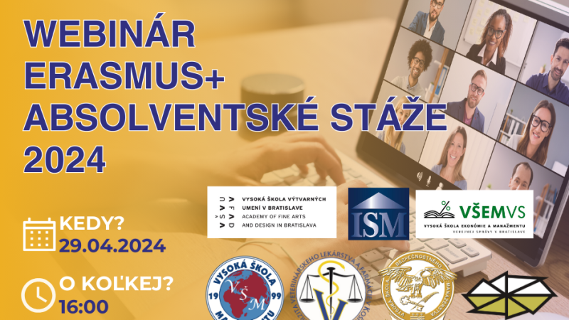 V pondelok 29.4.2024 sme pre končiacich študentov pripravili informačný webinár o Erasmus+ absolventských stážach 2024.