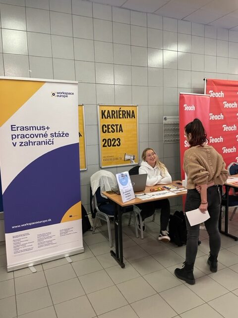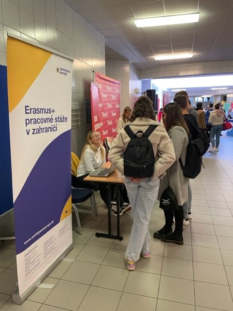 Dňa 21.11.2023 sme sa zúčastnili na Kariérnych dňoch 2023 na Ekonomickej univerzite v Bratislave. Počas celého dňa sme mali možnosť študentom priblížiť Erasmus+ absolventské stáže, ktoré pre absolventov Ekonomickej univerzity v Bratislave realizujeme. Študenti mali skvelú príležitosť pýtať sa nás na všetko čo ich zaujíma ohľadom týchto stáží.
